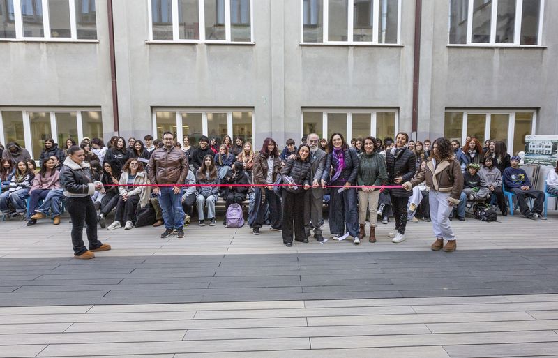 PESARO – Nuovi laboratori 'en plein air' per il liceo Mengaroni, con l’inaugurazione dell’aula Pon Edugreen nel cortile interno. Si tratta di uno spazio aperto, realizzato con 150mila euro di fondi Pon intercettati dalla scuola e con la collaborazione della Provincia, che ha aggiunto 40mila euro di fondi propri per la sistemazione e il recupero della base del cortile, con il rifacimento della fognatura e dello smaltimento delle acque meteoriche, dello stabilizzato e dei marciapiedi, in preparazione dell’allestimento delle finiture. Il disegno include pergolato, parete verde, pedane didattiche, nuova pavimentazione, agorà a gradonata giardino verticale, aiuole didattiche, pergolato bioclimatico, lampioni e passerella. «Un team di docenti ha progettato, coordinato e abbellito l’ambiente, destinato ad attività di apprendimento continuo per l’educazione ambientale e alla sostenibilità, alla cittadinanza attiva e alla tutela del patrimonio. Un intervento in linea con un sistema d’istruzione e apprendimento di elevata qualità», ha detto la dirigente scolastica Serena Perugini, affiancata dalle assessore comunali Camilla Murgia e Maria Rosa Conti e da una rappresentanza di docenti. Un bel segnale di colore e sviluppo in un’area strategica della città, dal Conservatorio Rossini alla Pescheria – ha detto il presidente Giuseppe Paolini – che vogliamo far diventare la piccola ‘Brera’ della provincia». Sul Polo delle Arti: «Andiamo avanti, abbiamo costituito il tavolo e più avanti chiameremo anche altri esperti. Mentre al Campus contiamo di fare un vero e proprio Polo tecnologico». Proprio al Campus Paolini si dirige, uscendo dal Mengaroni, per raggiungere il sindaco Andrea Biancani con la giunta comunale e gli studenti: «Un segnale di civiltà è ripulire dove gli altri sporcano. Sogno e spero una realtà dove tutti hanno rispetto dei luoghi pubblici come se fossero a casa loro. Importante sensibilizzare a 360 gradi».